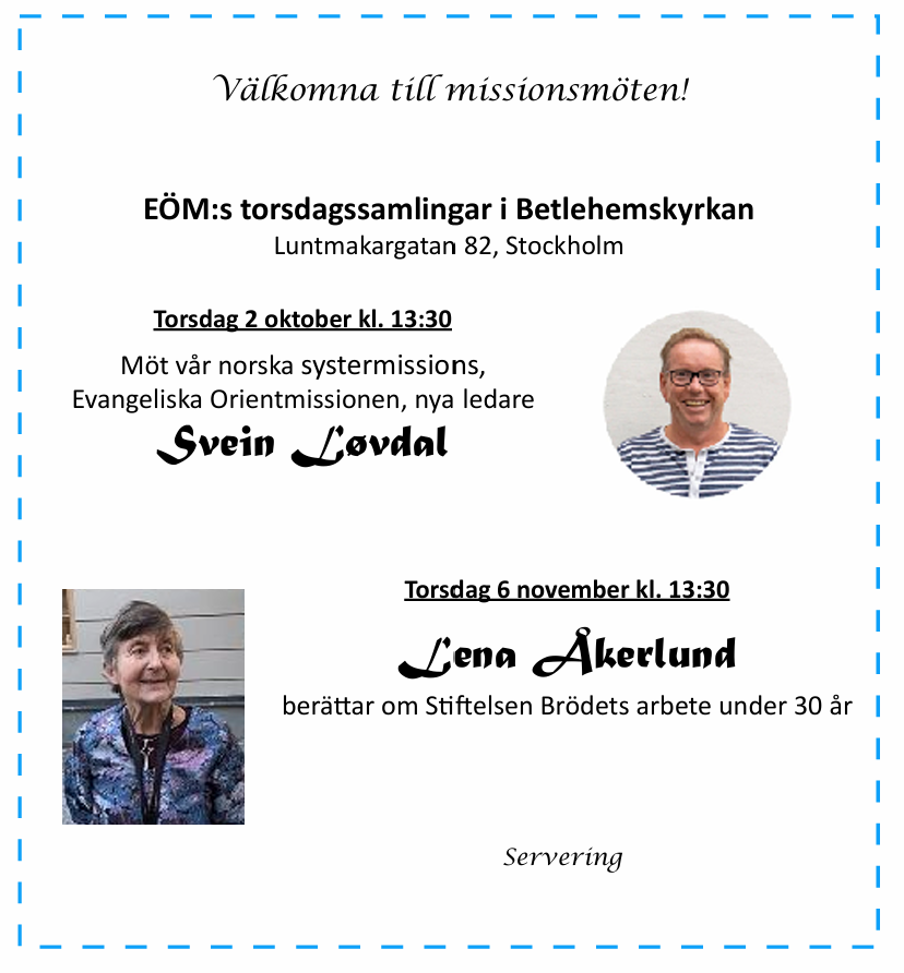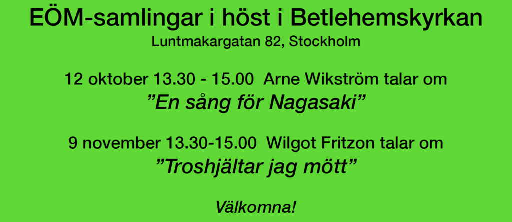 Välkomna också till EÖM:s samlingar i Betlehemskyrkan i Stockholm