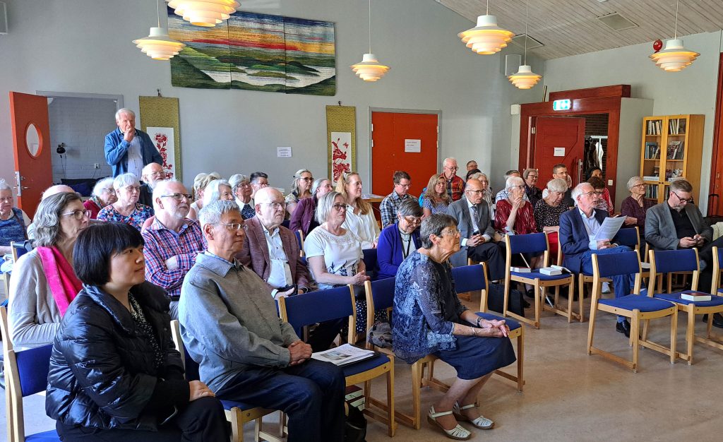 Temat för samlingen var “Igår, idag och alla dagar”, inspirerat av Hebr. 13:8 och också inledning till en lovsång, som under åren sjungits vid otaliga samlingar i vår mission. Efter en inledande andakt delade Tord Ershammar. några tankar kring detta tema. Mycket har förändrats i vår värld, vår mission, våra liv. Men som bibelordet fortsätter: ”Jesus densamme är”. Missionsuppdraget är också detsamma även om sättet att utföra det kan förändras. Vid dagens samling fick vi flera exempel på detta. Mick Lidbäck visade bilder som nyligen kopierats från gamla glasdiabilder om missionens arbete i Kina från början av förra seklet. Kyrkan i Kina kan nu använda dessa bilder när de berättar om sin kyrkohistoria. Vi fick också aktuella exempel på hur man i ett hårdnande klimat försöker sprida evangeliet. Mick berättade också om hur relationen mellan den lutherska kyrkan i Tanzania och Stockholm stift utvecklats med ett formellt vänskapsavtal om en fortsättning och fördjupning av samarbetet kyrkorna emellan. Lena Åkerlund gav konkreta exempel från personlig erfarenhet på hur vi kan engagera oss för mission på hemmaplan och uttrycka vår samhörighet med vår medmänniska i olika delar av världen.