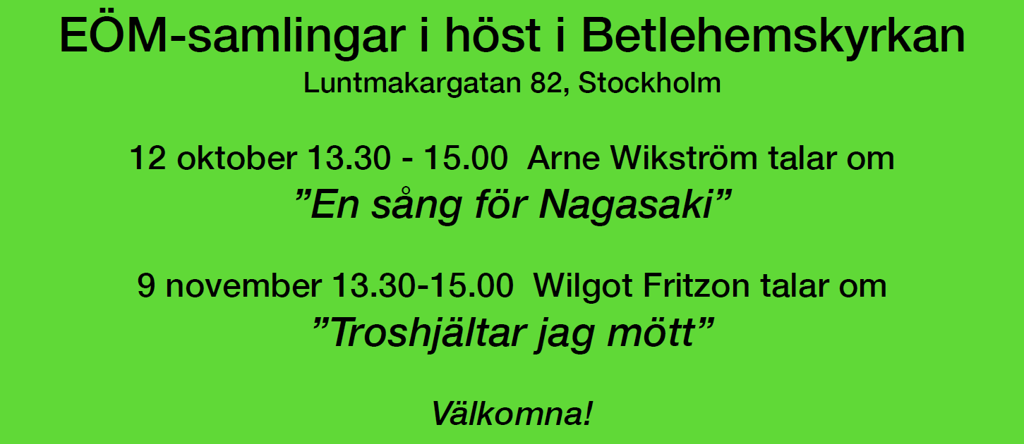 Välkomna också till EÖM:s samlingar i Betlehemskyrkan i Stockholm