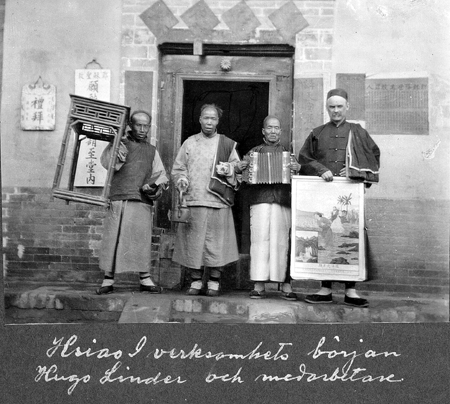 Dop i Pucheng 1916. Marie Linder med sonen Lennart till vänster och Hugo Linder till höger i bilden.